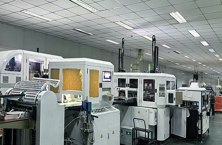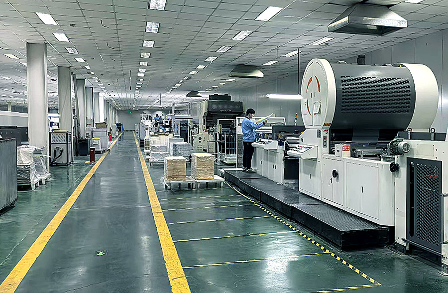 印后全面实现自动化、联动化、智能化,全厂上百台代表世界先进水平的包装设备,用工业互联网和自动化货物传输系统大联动,形成智能化包装生产体系,代表了行业未来发展方向。拥有1040S可变数据喷墨系统、激光打码机、联线及成品检品机、激光光刻机、全自动920、1050对开烫金机、全自动920、1050对开模切机、全自动高速覆膜机、全自动高速UV丝印机、浩友夫光控高速皮壳机、全自动精装盒粘盒上盒流水线、全自动天地盒流水线、各种卡纸盒自动粘盒机、十余台包装机械手流水线、光刻机、光刻纸生产覆合分切流水线、波拉300切纸系统、MBO折页机、意大利阿斯达2000全自动锁线机、玛天尼普利玛骑订龙、柯尔布斯整条胶装龙、精装龙等一大批先进设备,我公司有全自动集藏品包装合片、贴片机,由十余台装订机械手组成的流水线等一大批发明专利设备,全面实现了产品生产的标准化、自动化、联动化、智能化。