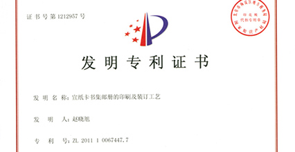 “东方之彩”的“宣纸卡书集邮册的印刷及装订工艺”荣获发明专利证书